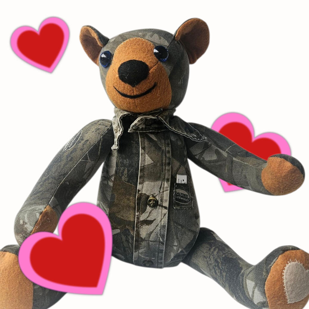Unlike traditional memory bears, these are made with clothing you choose—something you want your loved ones to remember you in. Scrubs, flannel, a favorite jacket, a uniform… whatever tells your story best.